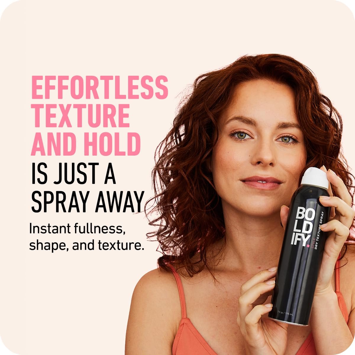 Lasting volume, texture, & manageabiility in an instant: Infused with bodifying polymers, BOLDIFY dry texture spray for fine hair plumps, texturizes, & separates strands to create a fuller, more dimensional style on contact, providing a light matte finish for an understatedly sleek “undone” look. Offering a light, never-stiff all-day hold, our proprietary formula retains hair’s natural movement – allowing for easier styling – and gives a textured grip that makes no-slip up-do’s a breeze.