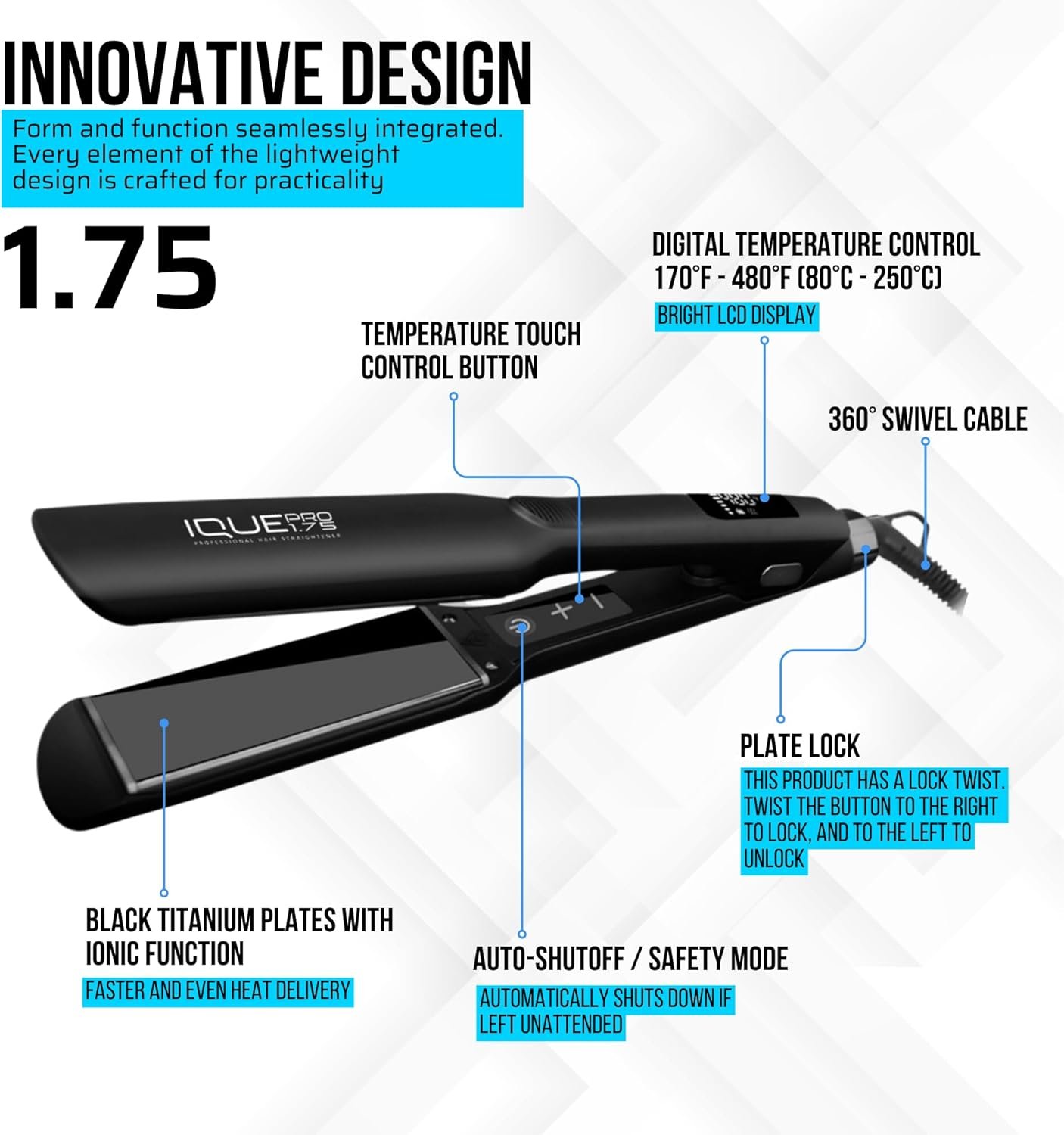 Curl and Straighten: Maximize efficiency and say goodbye to multiple hair styling tools that are impractical to carry around! The IQUE flat iron curling iron in one creates stunning looks and maintains versatility, being ideal for curling, straightening, elegant looks, special occasions, or professional use!