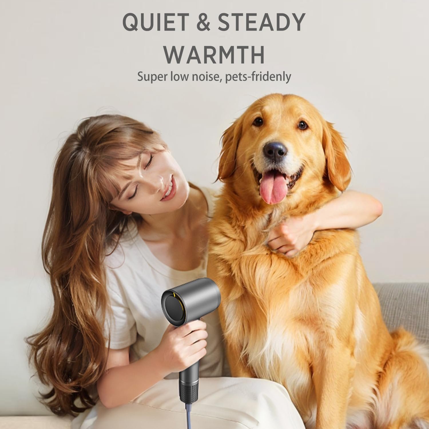 [Lightweight & Quiet] Designed for ergonomic comfort, this hair dryer weighs a mere 0.89 lb, lighter than a cup of coffee. Its lightweight design minimizes arm fatigue, ensuring a relaxed and comfortable experience even during extended use. Equipped with 8-layer damping and noise reduction technology, along with high sound insulation and German PI sound-absorbing material, it maintains noise levels under 51 dB. You can use it anytime without worrying about disturbing others.