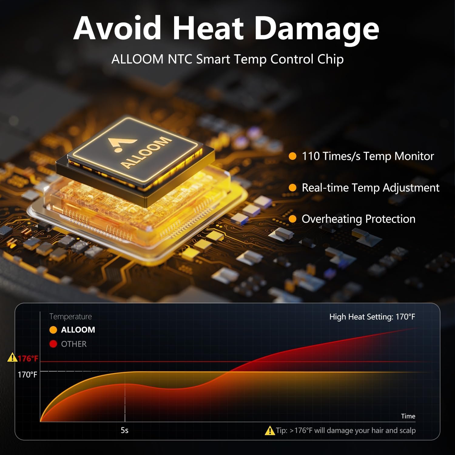 [Revolutionary Innovation, Redefining Hair Dryers!] Compared to other hair dryers, the Alloom hair dryer features the latest HPD brushless motor. With a speed of up to 160,000 RPM, it dries hair 5 times faster than other dryers. Additionally, the high-concentration negative ion technology and intelligent temperature control system provide professional hair care results, keeping your hair free from frizz and heat damage. Alloom next-gen blow dryer leaving you with beautiful hair every day.