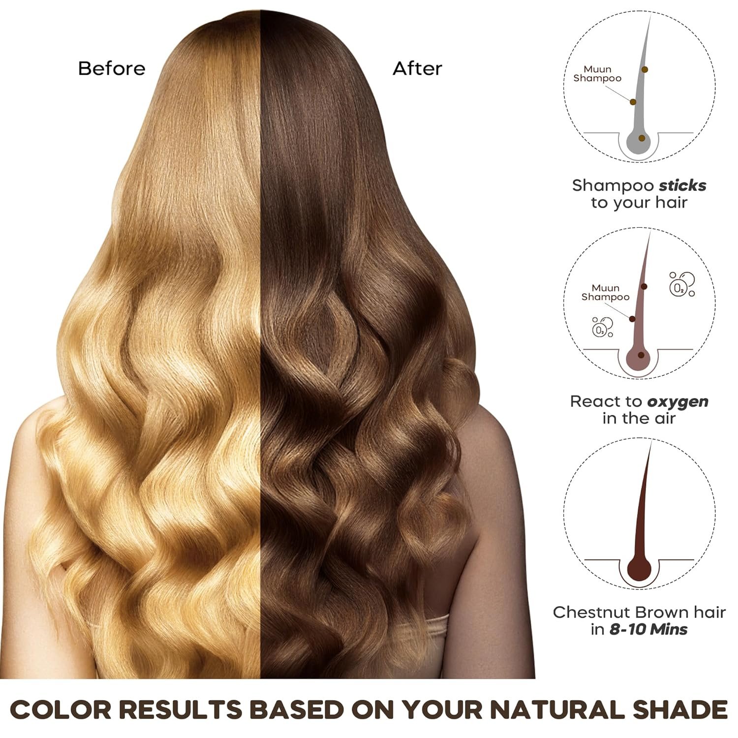 【Quick Chestnut Brown Shampoo】Our hair color shampoo can cover all your hair in 10-15 minutes, no need to wait long. Wash your hair as usual. It will keep your hair nourished and maintain long-lasting color.