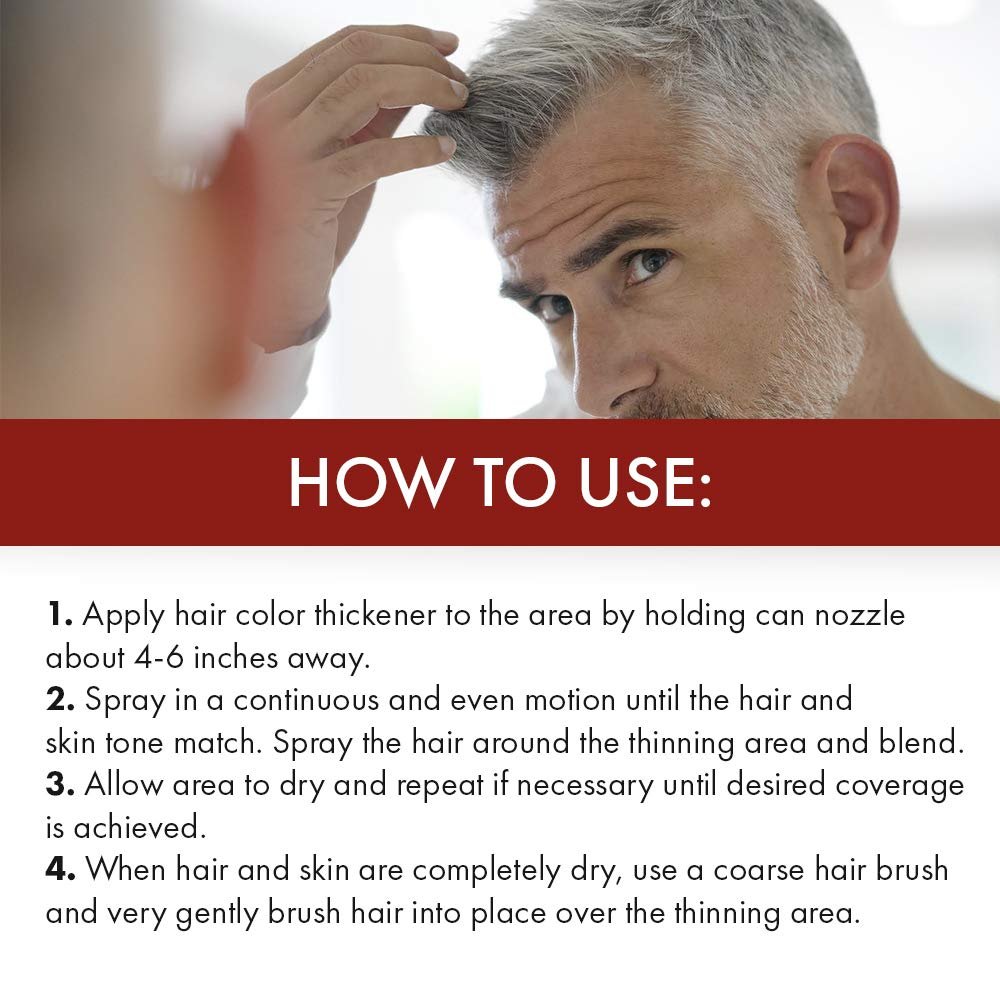 Instant Hair Transformation: Simply spray on your thinning crowns and sparse areas, blend-in, and brush your hair to get an instantly thicker, fuller look anytime, anywhere!