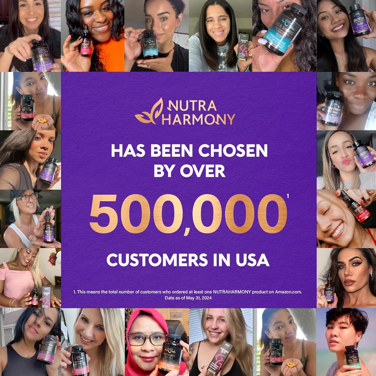 Biotin with Hyaluronic Acid & Collagen Supplement — The Nutraharmony biotin supplement contains potent Biotin, Collagen, Keratin, and other essential nutrients that naturally support your health and beauty. Take two capsules a day with our highly bioavailable formula that promotes fast and proper absorption. Take care of your skin.