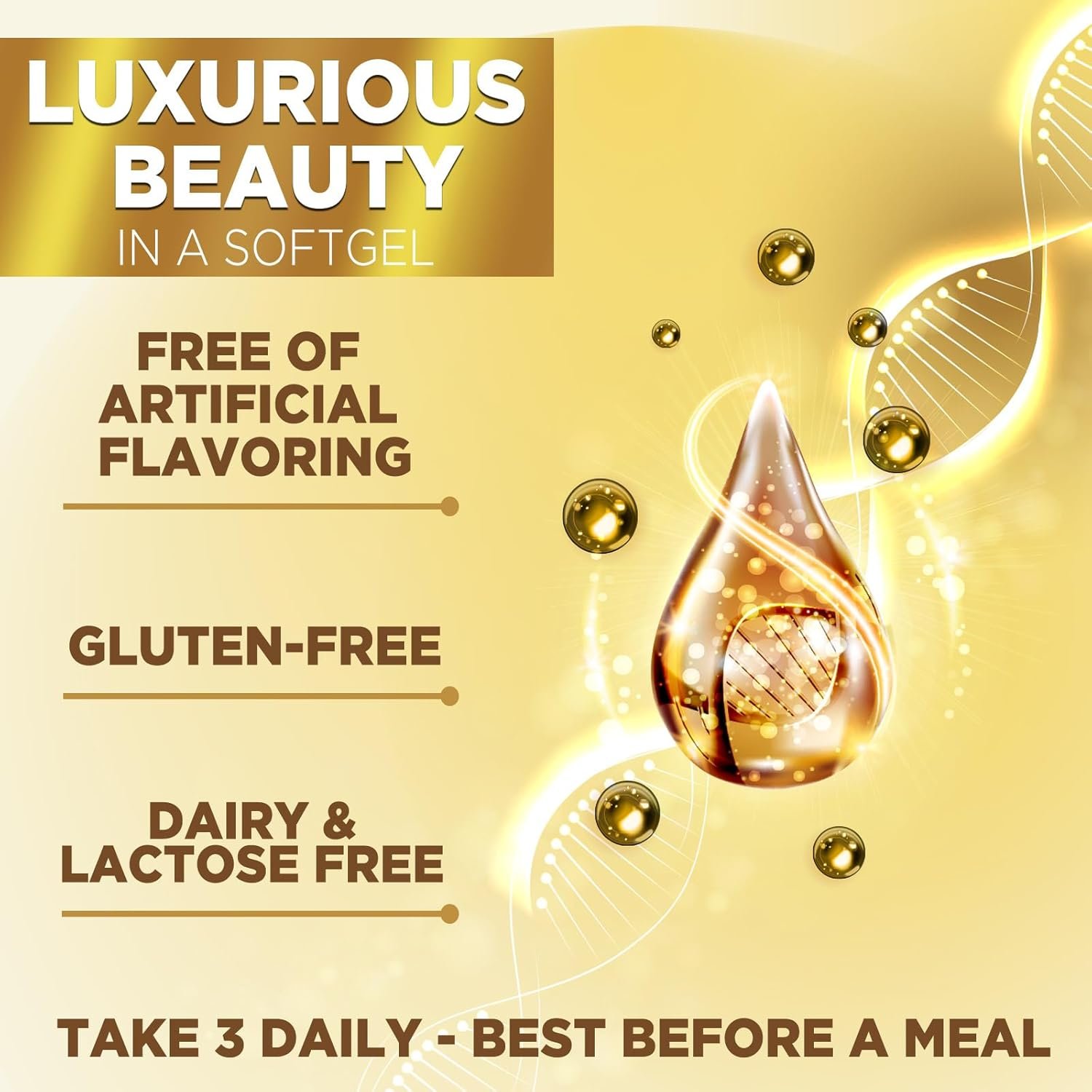 Transform your beauty routine with our Hair Vitamins for Women, a complete formula designed to support hair growth, glowing skin and stronger nails. Packed with 5000mcg Biotin, Collagen, and Hyaluronic Acid, this supplement targets common beauty concerns related to hair, skin and nails. Our formula also features Argan Oil, PABA, and Horsetail Extract for added nourishment, helping you support vibrant, healthy hair, as well as skin hydration and elasticity. Vitamins A, C, D3, E, and minerals like Zinc and Selenium provide the daily support your body needs to thrive. Perfect for women who want a trusted, non-GMO beauty supplement, these easy-to-take softgels combine the best nutrients for hair, skin, and nails into one convenient product. It’s a formula designed to support your natural beauty while fitting seamlessly into your wellness routine.