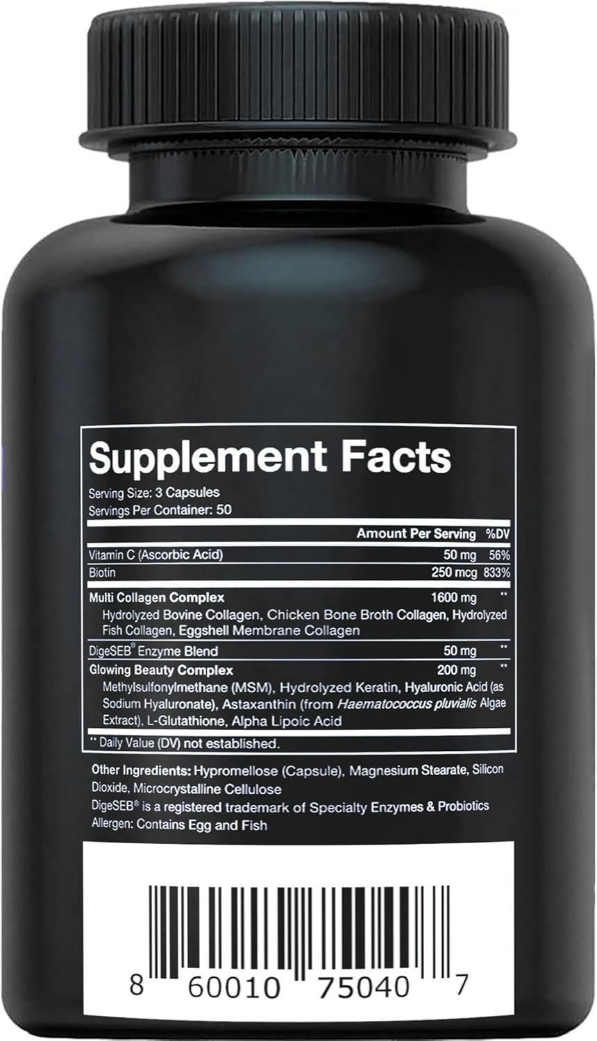 Comprehensive Collagen Blend: Contains type I, II, III, V, and X collagen for hair, skin, nails, and joint support. Plus, vitamin C, biotin, and hyaluronic acid for radiant skin, skin elasticity, and a glowing complexion.