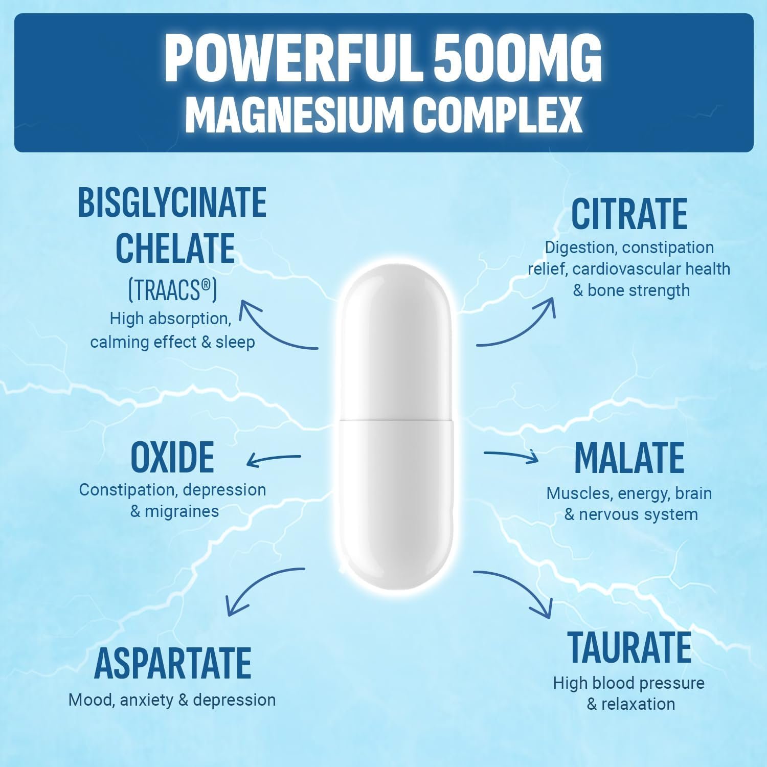 Supports Overall Wellness: These all-in-one magnesium capsules boost energy, enhance muscle recovery, alleviate discomfort, and relieve constipation with magnesium citrate, malate, and taurate. These capsules support strong bones for an active lifestyle.